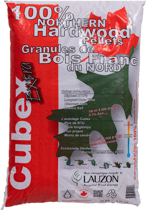 Lauzon Wood Pellets labels their Cubex brand as a Super Premium certified wood pellet.